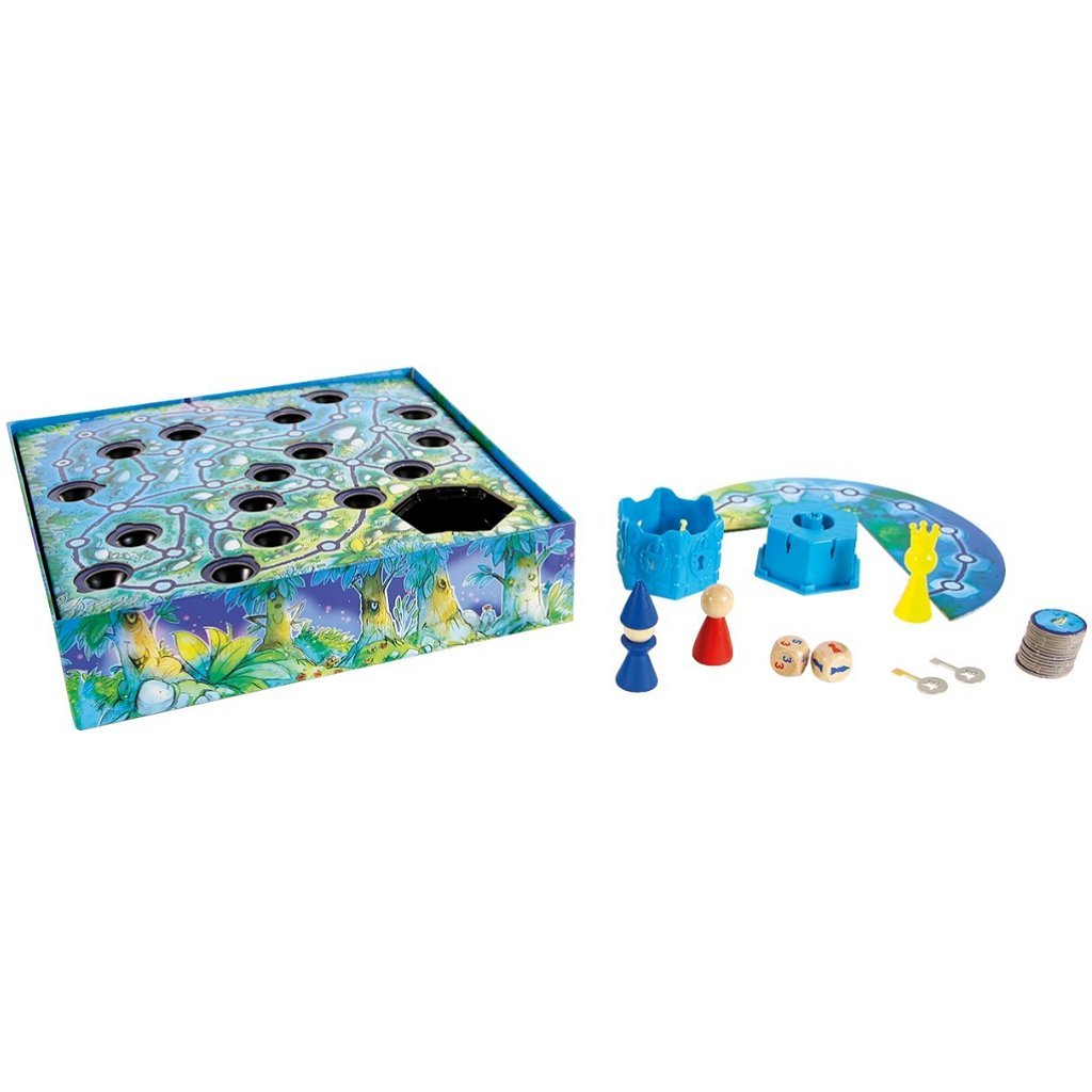 Elke ronde gooi je de dobbelstenen om te bepalen wie mag bewegen. Terwijl de spelers razendsnel hun pionnen richting de verborgen sleutel sturen, groeit de spanning. Onder de kleurrijke bosvelden ligt ergens de sleutel verborgen. Wie onthoudt goed waar hij al gezocht heeft? En wie raadt slim welke velden Ravenhorst probeert te beschermen? Zodra iemand de sleutel vindt, stormt iedereen naar de toren. Past de sleutel? Dan springt de kleine tovenaar vrolijk omhoog!