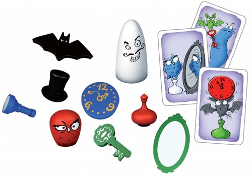 In Vlotte Geesten draait alles om snelheid en nauwkeurigheid. Zodra er een kaart wordt omgedraaid, moet je razendsnel bepalen welk voorwerp je moet pakken. Soms is dat precies wat je ziet, maar vaak is het net wat anders. De vijf voorwerpen – spook, fles, stoel, muis en boek – liggen klaar op tafel, klaar om gegrepen te worden. Elke ronde is anders en vraagt om snelle reflexen en scherpe observatie.