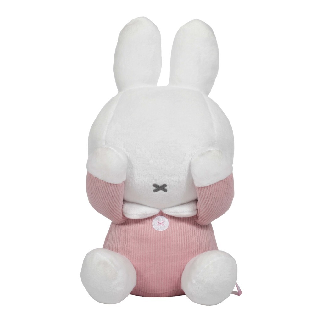 De knuffel is vervaardigd uit heerlijk zachte materialen, met als eyecatcher het ribfluwelen roze pakje. Het lijfje is soepel gevuld, waardoor Nijntje makkelijk vast te pakken en te knuffelen is. Ook de oren en pootjes zijn zacht en flexibel. Er zijn geen harde onderdelen of losse elementen, dus alles is veilig voor babyhandjes. Ideaal om mee in slaap te vallen of te troosten na een lange dag vol indrukken.
