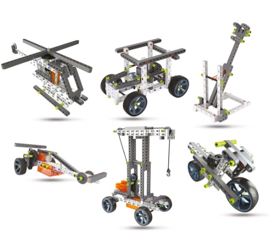 De set bevat ruim 250 stevige onderdelen die eenvoudig in elkaar klikken en toch technisch uitdagend blijven. Tandwielen, assen, hendels en verbindingsstukken vormen samen de bouwstenen voor talloze constructies die daadwerkelijk functioneren. Kinderen ontdekken hoe stuurinrichtingen werken, hoe krachten worden overgebracht en hoe beweging ontstaat. De robuuste materialen zorgen ervoor dat de modellen niet alleen leerzaam, maar ook duurzaam zijn, zodat het bouwen steeds opnieuw kan worden herhaald.
