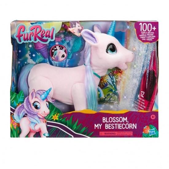 De Fur Real Bestiecorn is jouw sprankelende metgezel in een regenboogwereld vol verbeelding. Dit schattige, interactieve eenhoornvriendje reageert op aanraking, maakt magische geluiden en zwaait blij met zijn glinsterende manen. Strijk met je hand langs zijn rug om hem te laten hinniken, of geef zacht een tikje op zijn hoorn om verrassende reacties uit te lokken. Dankzij de speelse technologie voelt deze bestiecorn bijna echt, waardoor elk contactmoment betoverend wordt.