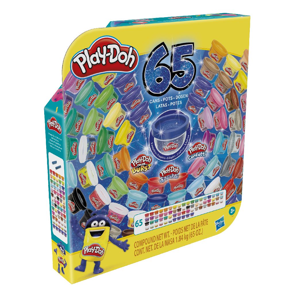 Met Playdoh Ultimate Color Collection 65 Pack kun je er op los kleien! In de grote set zitten wel 65 potjes klei. Sommige kleuren zijn gemengd met glitter.