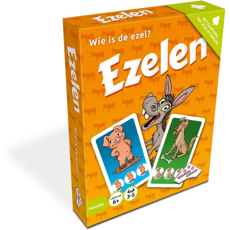 De kaarten schuiven vliegensvlug van hand naar hand. Iedereen houdt stiekem zijn eigen stapel in de gaten. In Ezelen Kaartspel is er geen tijd om rustig na te denken. Ogen schieten heen en weer, vingers glijden over de kaarten. Vier gelijke kaarten verzamelen, dat is het doel. Maar zodra iemand het voor elkaar heeft, begint het echte spektakel: de jacht op de ezelpionnen barst los.