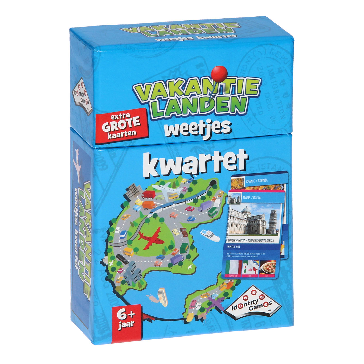 Met het Vakantielanden Weetjes Kwartet wordt elk potje kaarten een ontdekkingstocht langs iconische landen en wereldberoemde bezienswaardigheden. Jonge spelers reizen in gedachten van Spanje naar Italië en van Frankrijk naar Duitsland, terwijl ze kwartetten verzamelen én hun kennis vergroten. De kleurrijke illustraties en vrolijke weetjes zorgen voor een speelse kennismaking met geografie en cultuur.