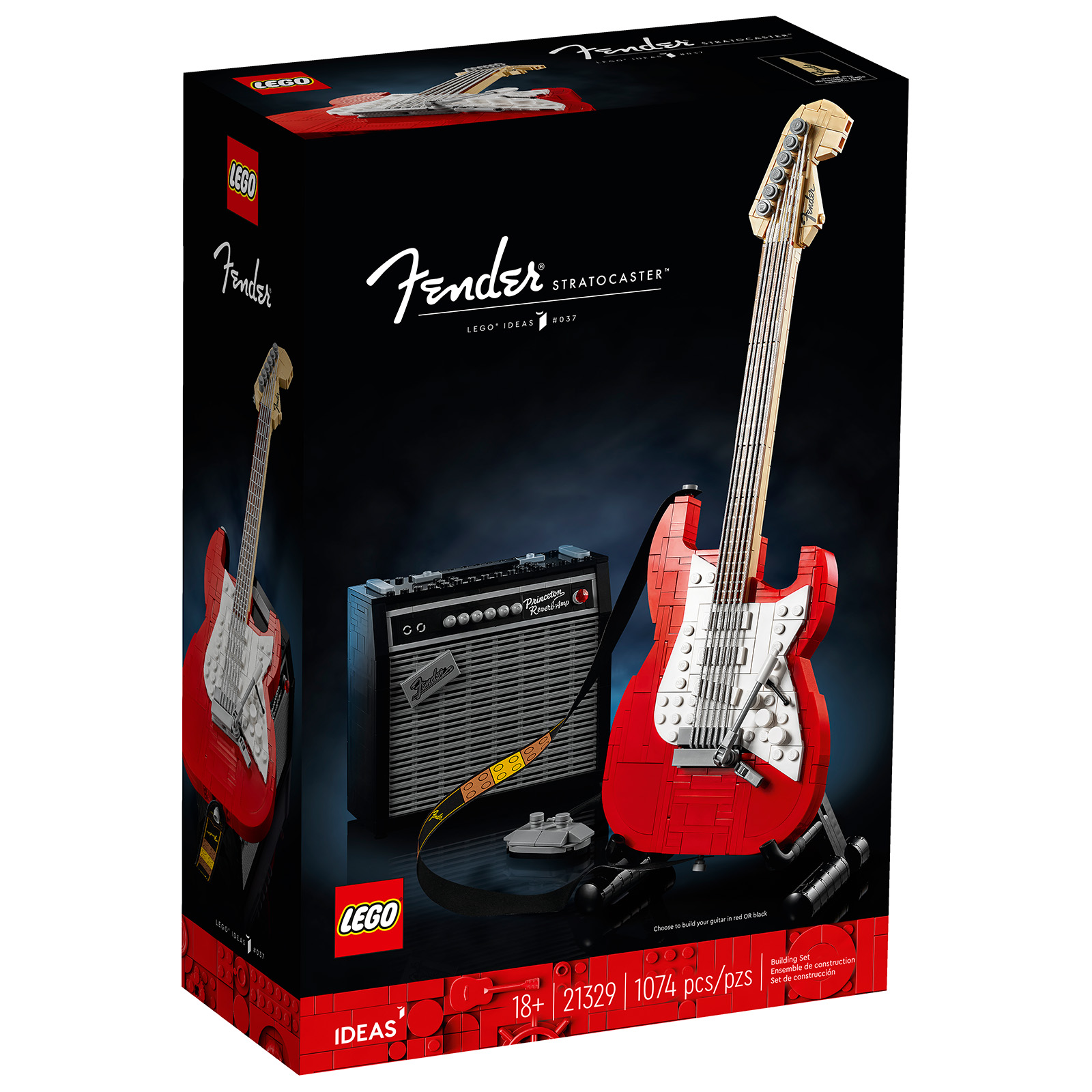 De Fender Stratocaster is zorgvuldig ontworpen met oog voor authenticiteit. Bouwers kunnen kiezen tussen een klassieke rode of zwarte uitvoering, compleet met een versterker en kabel die het geheel tot leven brengen. De gitaar is voorzien van realistische elementen zoals een tremolo-arm, volumeknoppen en een afneembare hals. Zelfs de versterker is minutieus nagebouwd, met verwijderbare panelen en een interne printplaat van LEGO-steentjes. Elk onderdeel straalt vakmanschap en liefde voor muziek uit, waardoor de set even technisch als artistiek aanvoelt. Het bouwen voelt als componeren: elk detail telt.