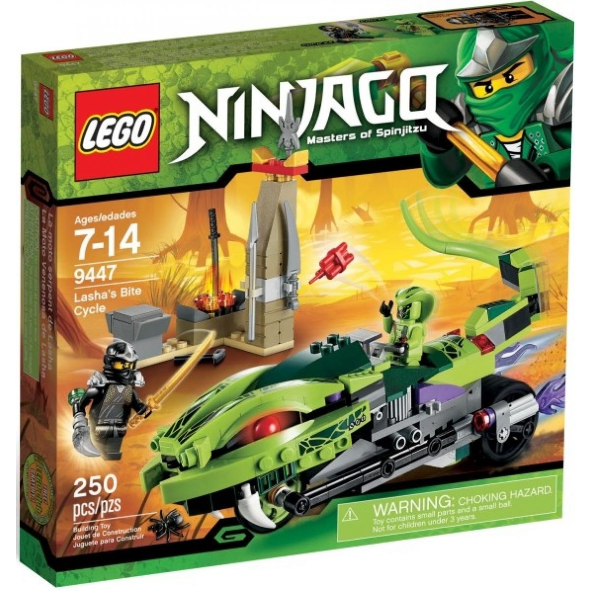 9447 LEGO Ninjago Lashas Bijtende Motor scheurt jouw speelwereld binnen met een gevoel van gevaar en onvoorspelbaarheid. Het geluid van de motor lijkt bijna hoorbaar terwijl Lasha dichterbij komt, altijd op jacht en nooit aarzelend. In jouw verhaal is dit geen gewone rit, maar het begin van een confrontatie waarin snelheid en intimidatie centraal staan. De bijtende uitstraling van de motor maakt meteen duidelijk dat dit voertuig bedoeld is om angst aan te jagen en tegenstanders onder druk te zetten. Vanaf het eerste moment voelt het spel gespannen en vol dreiging.