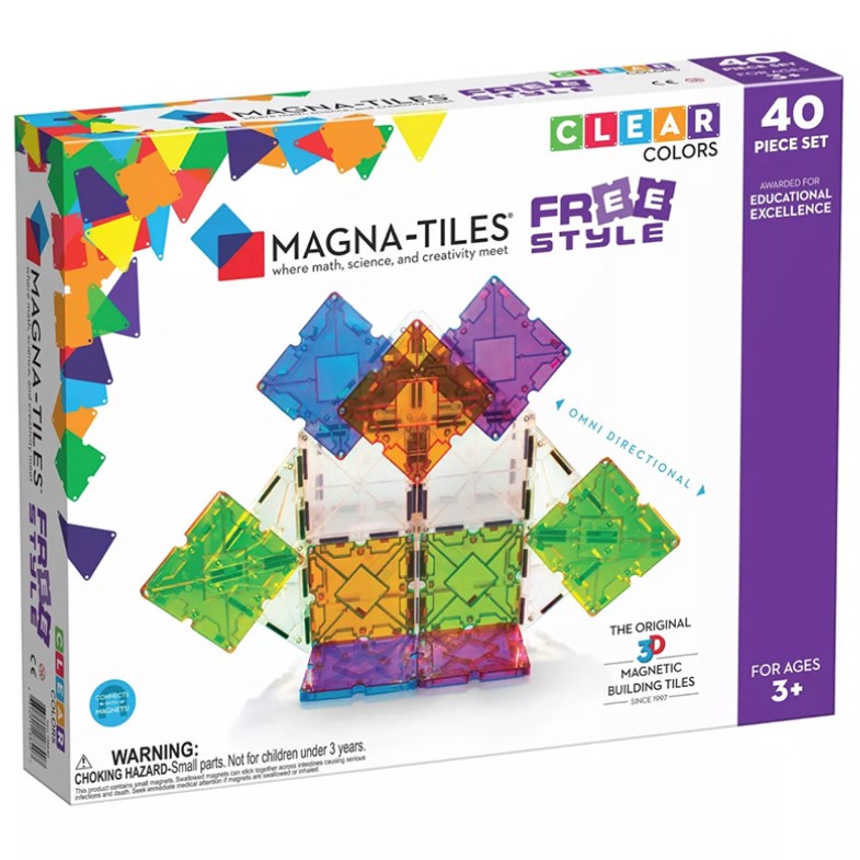 Met Magna-Tiles Freestyle zijn de regels van het bouwen verdwenen—en dat is precies de bedoeling. Deze unieke set geeft kinderen de vrijheid om te bouwen zoals zij het willen, zonder vaste patronen of begrenzingen. Dankzij speciale “X-stukken” met magneten aan alle kanten kunnen vormen alle kanten op groeien, draaien en zweven. Het is een speelse uitnodiging om los te laten wat ‘hoort’ en gewoon te bouwen wat je voelt.