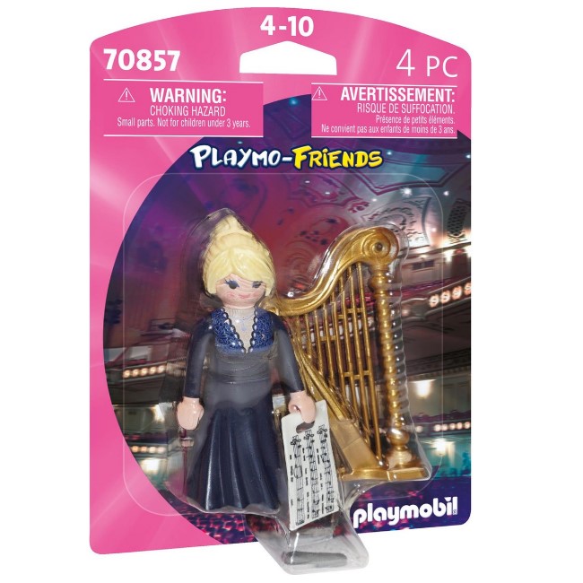 De 70857 PLAYMOBIL Playmo Friends Harpiste neemt kinderen mee in een wereld vol zachte melodieën, rustige momenten en fantasierijke verhalen. Deze elegante harpiste voelt alsof zij elk moment een nieuwe toon kan aanslaan die het begin vormt van een magisch avontuur. Kinderen bepalen zelf welke muziek zij speelt, welke personages daarop reageren en hoe het verhaal zich langzaam ontvouwt. De warme kleuren, zachte vormen en vriendelijke uitstraling maken haar direct toegankelijk. Zo kunnen kinderen moeiteloos instappen in hun eigen muzikale verhaal waarin rust, ritme en verbeelding samenkomen in een kalme flow.