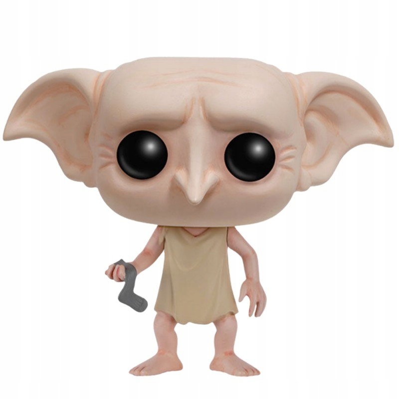 Dobby wordt afgebeeld in zijn eenvoudige linnen kleding, een verwijzing naar zijn bescheiden herkomst en verleden als dienaar. In zijn hand houdt hij een sok, hét ultieme symbool van zijn bevrijding. Zijn tengere lichaamstaal en grote ogen zijn zorgvuldig vertaald in de Funko Pop-stijl, waarbij zowel zijn kwetsbaarheid als zijn innerlijke kracht zichtbaar blijven. De subtiele details in zijn gelaat, oren en houding geven dit figuur een ontroerende expressie die direct herkenbaar is voor iedere fan.