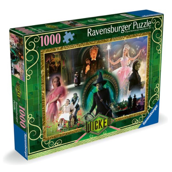 De Ravensburger Wicked Puzzel – 1000 stukjes dompelt puzzelaars onder in de magische sfeer van de wereldberoemde Broadway-musical. Deze uitgebreide legpuzzel combineert theater, mysterie en muziek tot een meeslepende ervaring die zowel ontspannend als uitdagend is. Perfect voor puzzelliefhebbers die genieten van visuele rijkdom en voor fans van Wicked die een stukje van hun favoriete verhaal in huis willen halen. Elke keer dat je aan deze puzzel werkt, ontvouwt zich stukje voor stukje een artistiek eerbetoon vol kleur en symboliek.