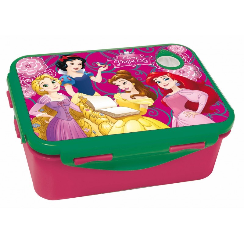 Op de stevige deksel schitteren de bekende Disney-prinsessen in hun prachtige jurken. Hun glimlach, schitterende kleuren en sprookjesachtige details zorgen meteen voor herkenning bij kleine prinsessenfans. Kinderen tonen hun betoverende broodtrommel vol trots aan vriendinnetjes en klasgenootjes.