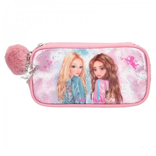 Het TOPModel Luxe Etui Angel valt direct op door het prachtige ontwerp met zachte pastelkleuren en een betoverend engelenmotief. De mooie glinsterende details en het stijlvolle patroon maken dit etui onweerstaanbaar voor jonge TOPModel-fans. Het zorgt ervoor dat schrijven en tekenen extra leuk wordt, met een persoonlijke en modieuze touch.