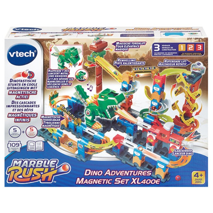 Of ze nu spelen alleen of samen met vriendjes, de VTech Marble Rush Dino Adventures zorgt voor eindeloos plezier. Het is de perfecte combinatie van bouwen, bewegen en beleven—een race door de oertijd met een moderne twist. Iedere baan die gebouwd wordt, is anders. Elke afsprong levert nieuwe lachmomenten op. En met dino’s die op onverwachte plekken tevoorschijn komen, verveelt het nooit. Dit is knikkerplezier met tanden en klauwen, precies zoals kinderen het graag zien.