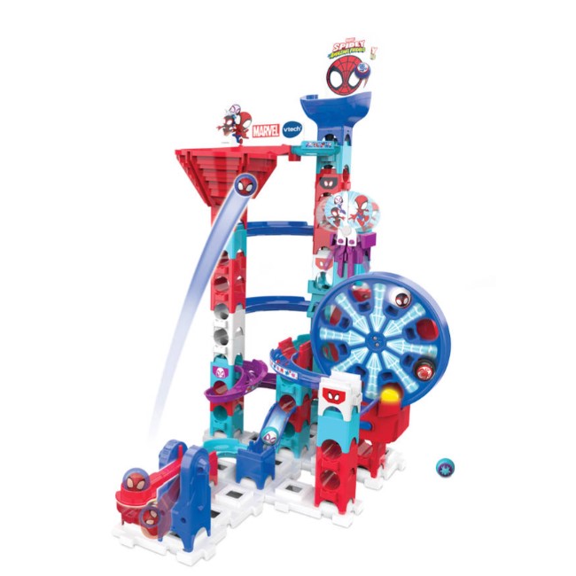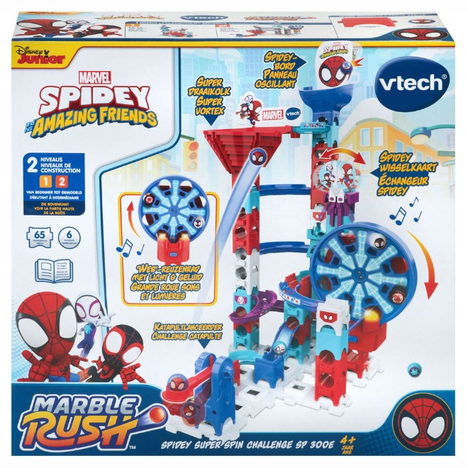 De VTech Marble Rush Spiderman is een spannende en interactieve speelset waarin kinderen de actie van Spiderman kunnen combineren met het plezier van rollende knikkers. Met verschillende onderdelen en interactieve functies stimuleert deze set de motoriek en het probleemoplossend vermogen van jonge kinderen, terwijl ze genieten van een avontuur met hun favoriete superheld.